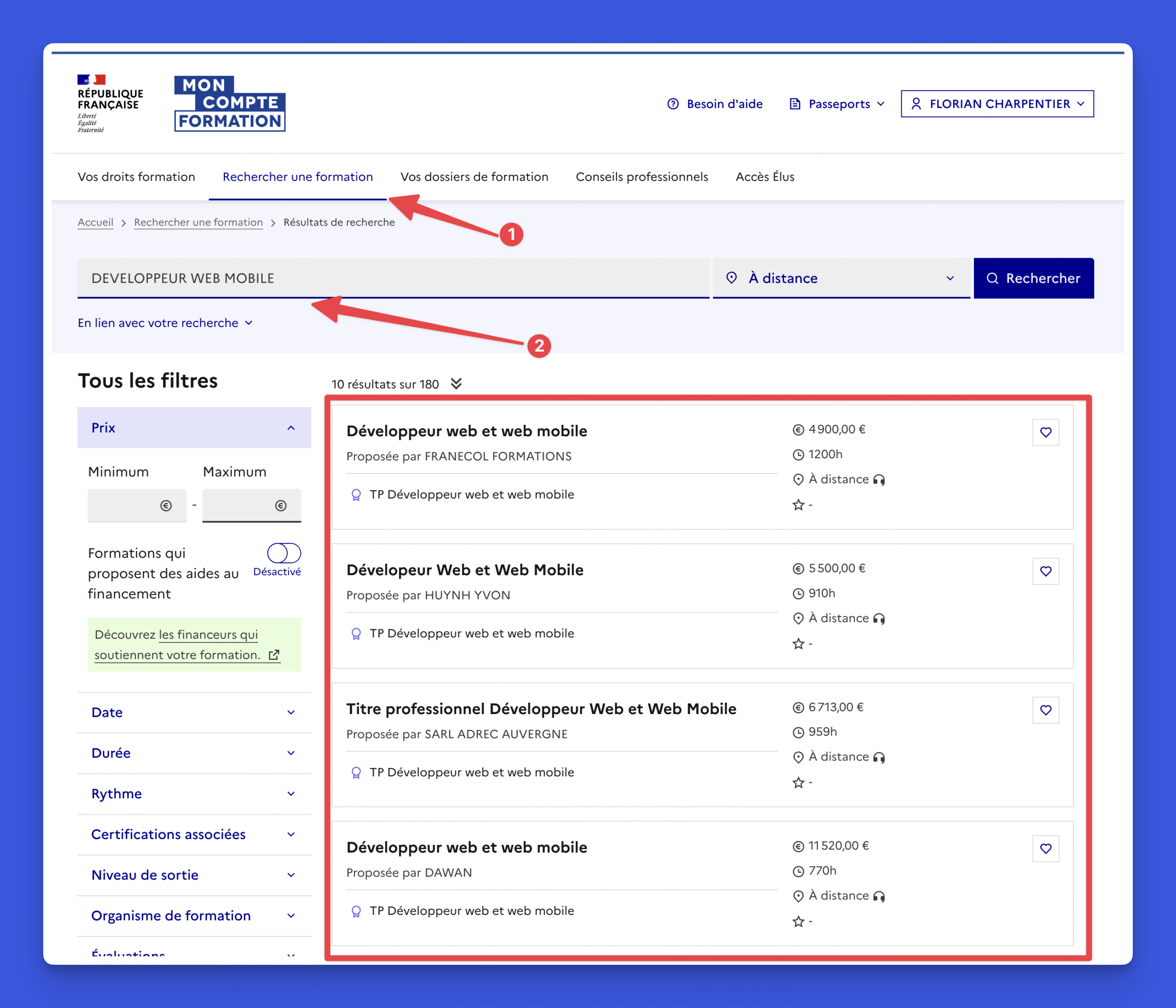 - Rends-toi sur le site moncompteformation.gouv.fr pour trouver ta formation.